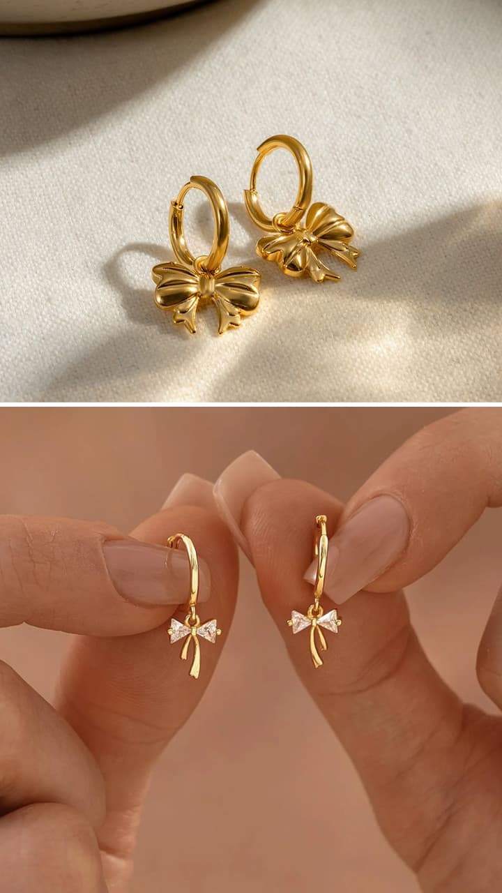 If you want a little cute and stylish look, then choose bow design stone work hoops. This earring looks very cute with small stone pattern. This design looks special in parties.