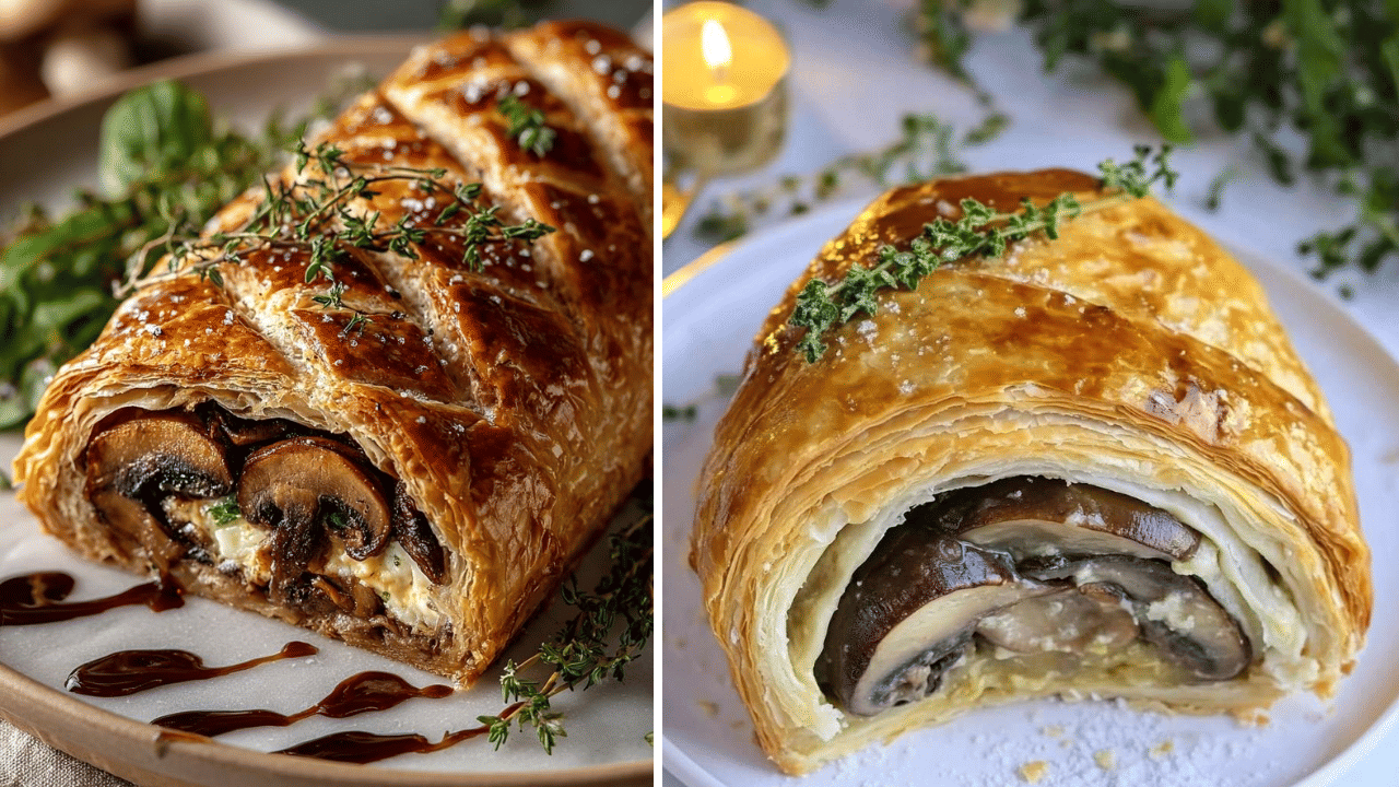 This Wellington ranks high in top Christmas vegetarian dinner recipes. It feels rich due to its creamy mushroom filling and buttery pastry.
