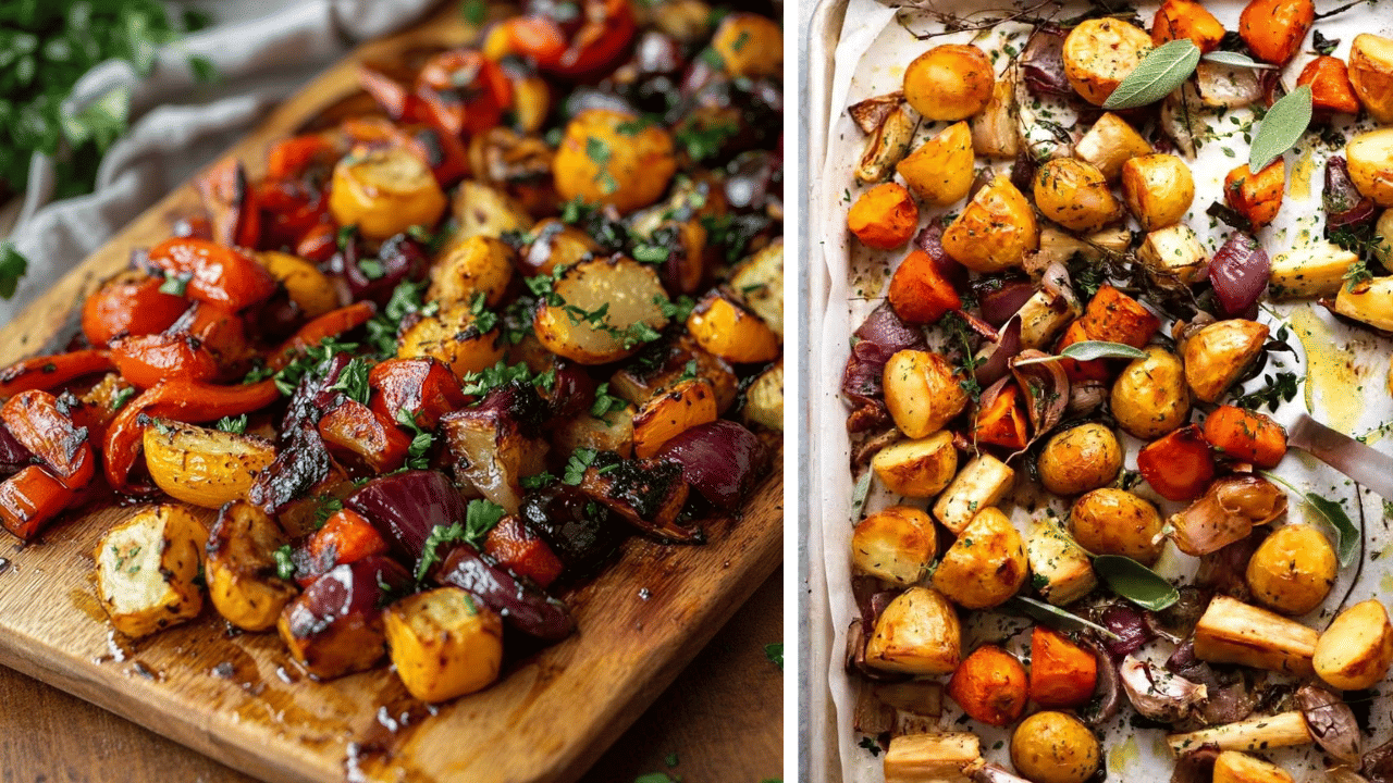 3. Roasted vegetable tray bake — Quick, simple and vibrant meal for festive vibes