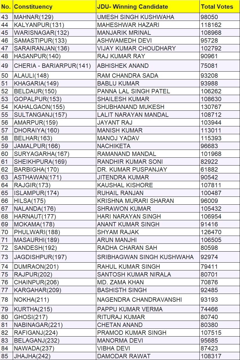 JDU got 85 seats: Know who became MLA from where?