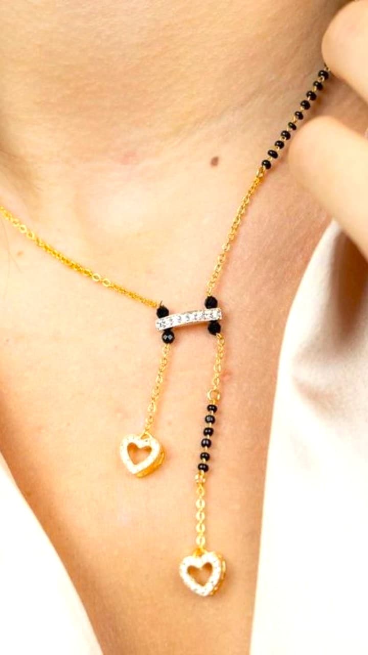 Try fancy mangalsutra design for minimal and modern look instead of heavy mangalsutra on Karva Chauth. Watch the budget friendly option inside 2 grams of gold here.