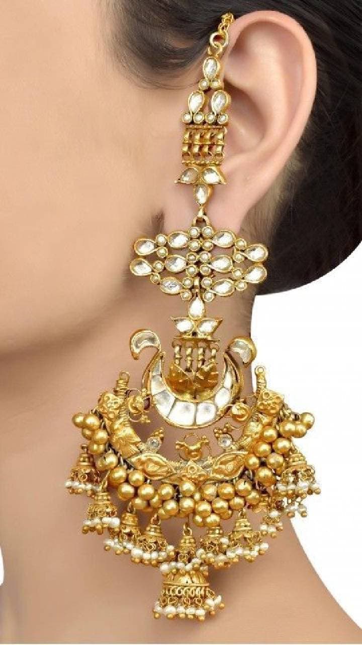 In your sister’s wedding, you can wear fancy designs of gold plated long chand bali, which also have pearl work. It will look very beautiful.