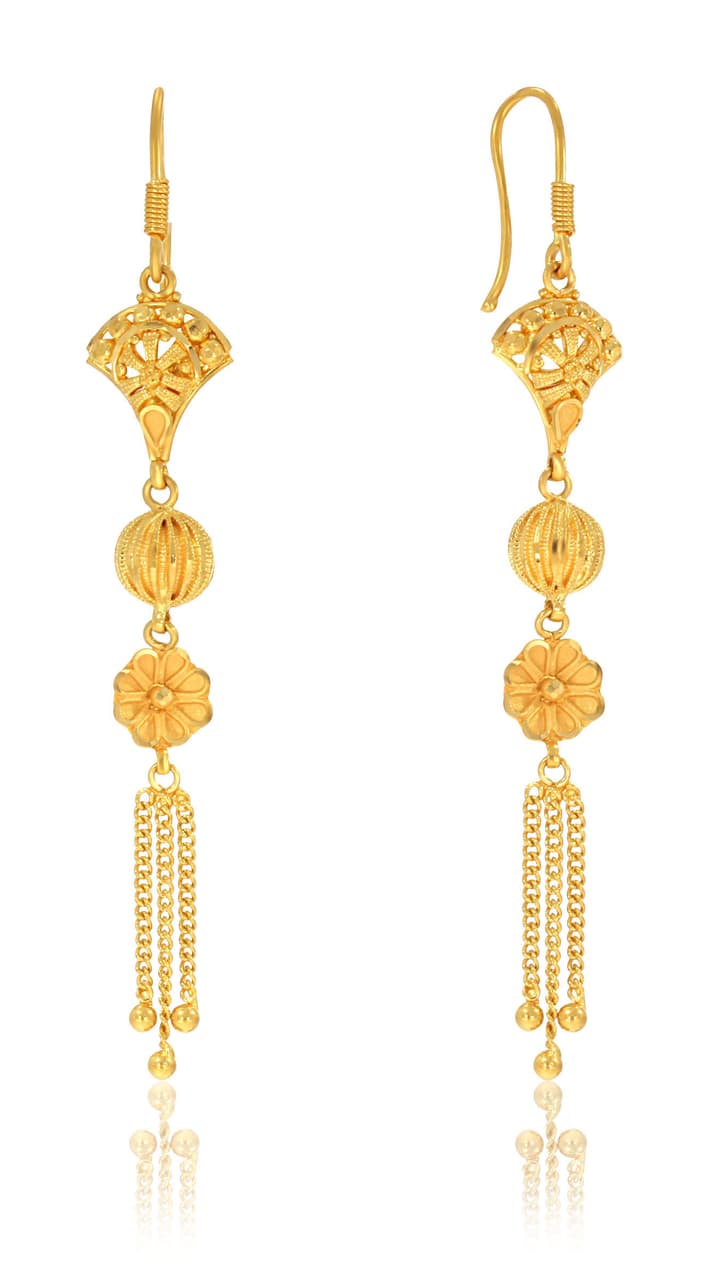 5 trendy gold long earring designs that can be worn every day and look stunning even with less gold. See the best latest gold designs here.
