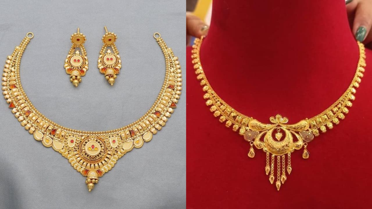 Necklace Set Designs: Women spend maximum time in shopping during the wedding season. Choosing matching clothes and jewelery is a big task. At present the prices of both gold and silver have increased. In such a situation, getting your favorite necklace made is an expensive task. If you also want a look like gold jewelery while staying in budget, then why not try gold plated necklace. These look like real gold. It is difficult to differentiate between real and fake by looking at them. Let us know about such fancy designs of necklace, which you can balance the budget.