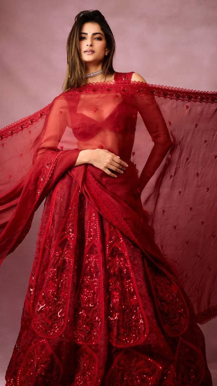 Apart from red and pink, Palak Tiwari’s emerald green colored lehenga is really special to look at. Along with this sleeveless sweetheart neckline blouse is the perfect combination.