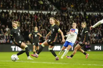 The Lionesses inevitably grabbed their second five minutes before the break as Ella Toone cut the ball back for Bronze on the penalty spot who stroked beyond the helpless Arnold.