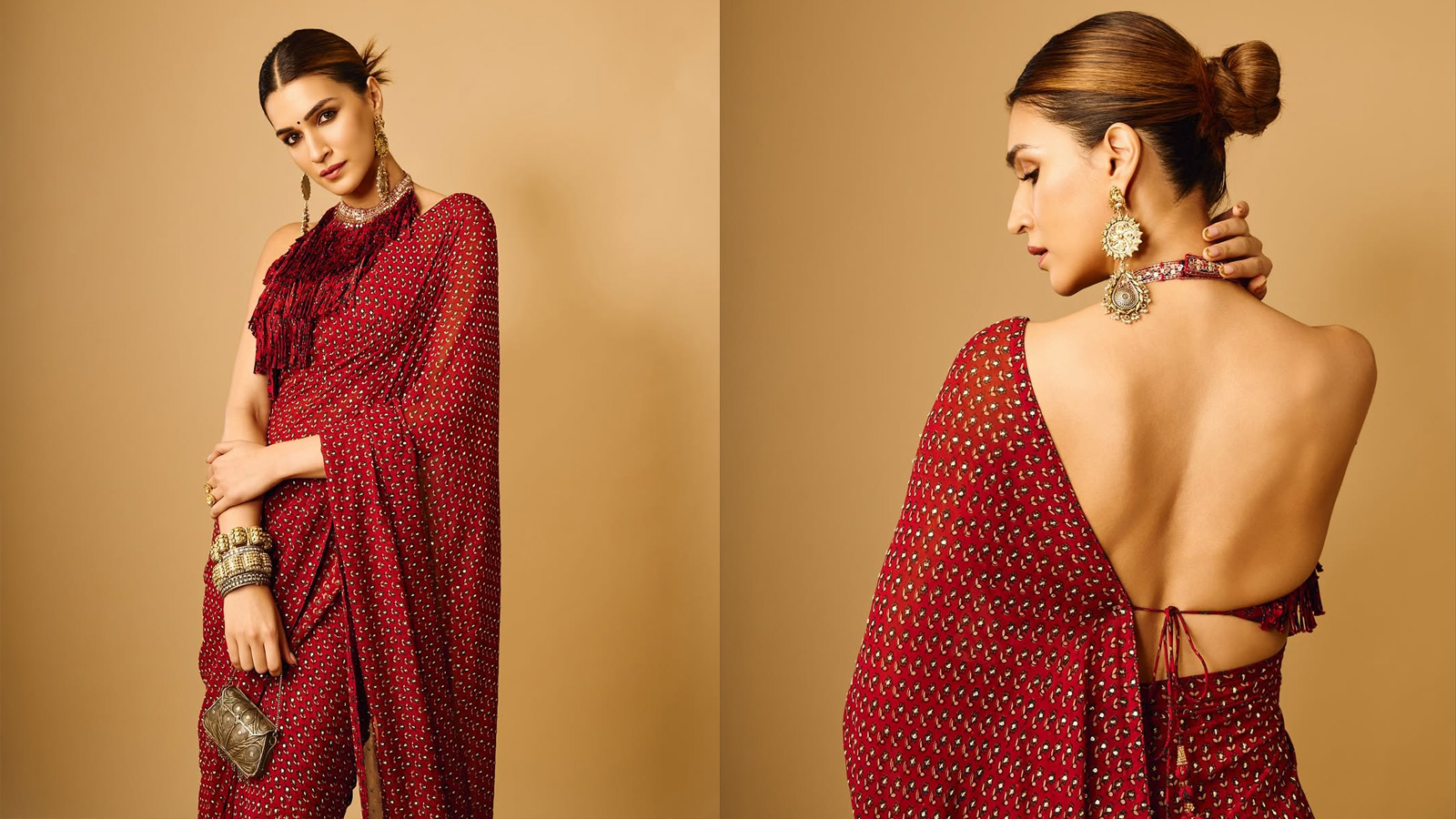 Saree Designs: If you work in the corporate sector and hold a senior post, you often get invitations to attend parties. If you are bored of attending parties wearing western clothes again and again, then why not try saree this time. Believe me, when you go to a party wearing a saree, everyone’s eyes will be on you. Recently, Kriti Sanon posted one of her saree looks on Instagram, which you can recreate for the party. From saree to blouse and makeup to hair style, everything makes her party friendly.