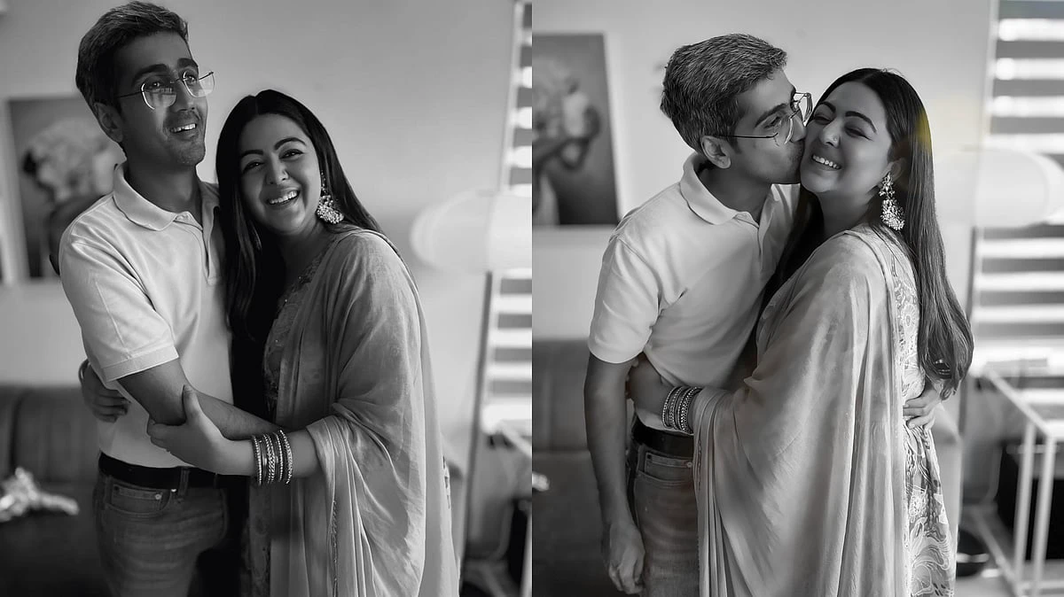 In one of the photos shared by the actress, her husband is seen kissing her. Another monochrome photo shows them hugging each other. She simply wrote, “Ghar” as the caption and added a red heart emoji.