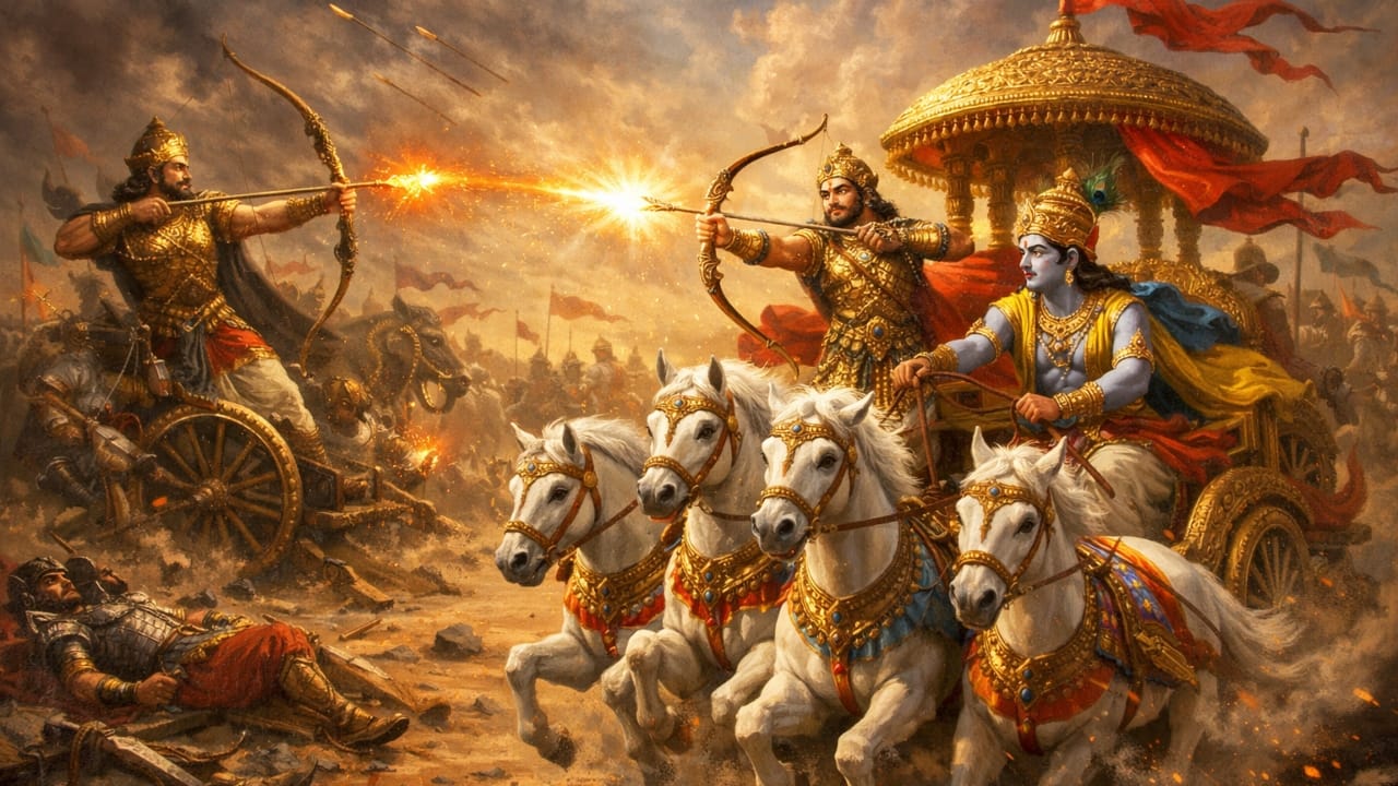 Mahabharat Katha: When Arjun’s life was in danger during the war with Karna, Shri Krishna saved his life like this