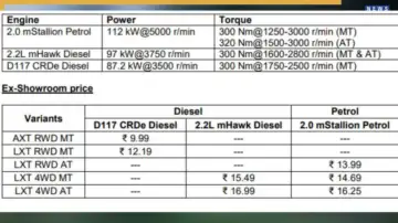 The users will be able to choose between three engine options. These include the 2.0 M stallion Petrol, which produces around 150Hp @ 5000 RPM and a max torque figure of 300 Nm between 1250-3000 rpm for manual and 320 Nm for Automatic. The two diesel options will be a 2.2L mHawk Diesel which produces 130 Bhp along with 300 nm peak torque between 1600-2800 rpm. Beyond that, users can also get the D117 CRDE Diesel engine that produces 116 HP and a peak torque of 300 Nm @ 1750 -2500 RPM.
