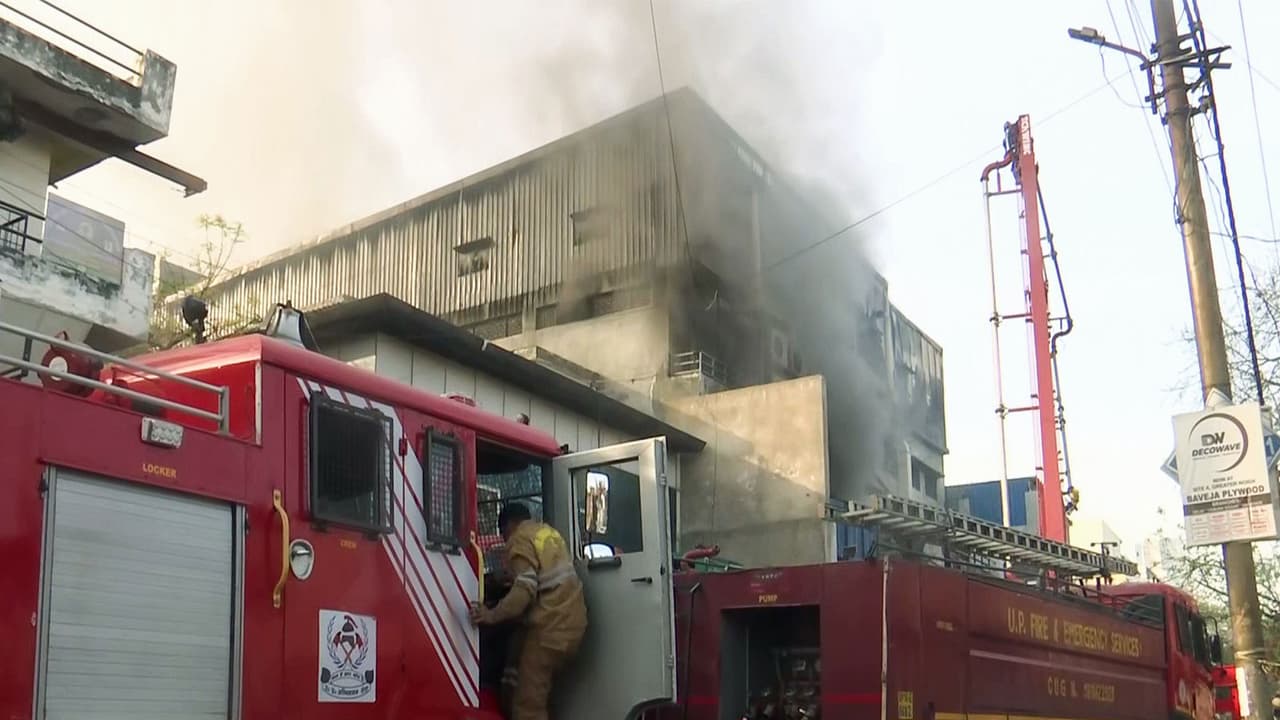 Firefighters, along with police personnel, are trying to control the blaze using three fire engines. Thick smoke and intense flames have made it difficult to bring the fire under control.