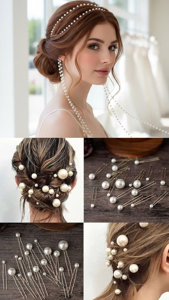 If you want a royal touch without too much makeup and heavy jewellery, then pearl hair accessories are the most beautiful option. You also try this Maharani style pearl hairstyle.