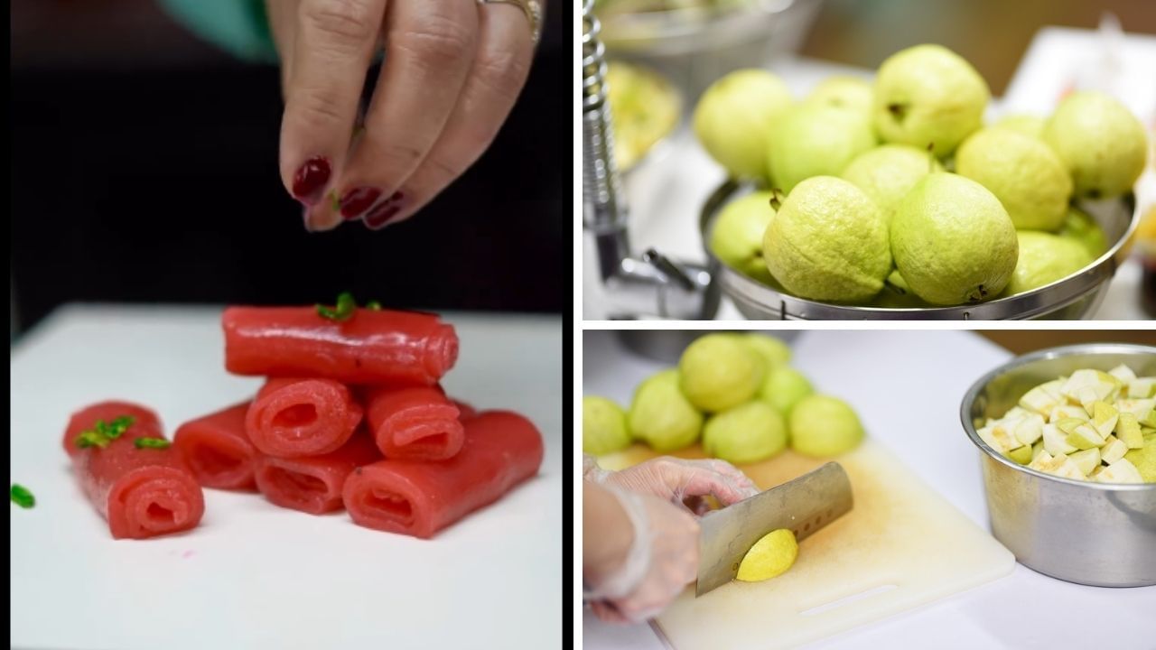 You will need 500 grams ripe guava, 1 cup sugar, 1 tablespoon lemon juice, half teaspoon red chili powder, 1.2 teaspoon black salt, half teaspoon white salt, 1 teaspoon butter, a few drops of food color (pink). Now let us know the method of making guava papad.