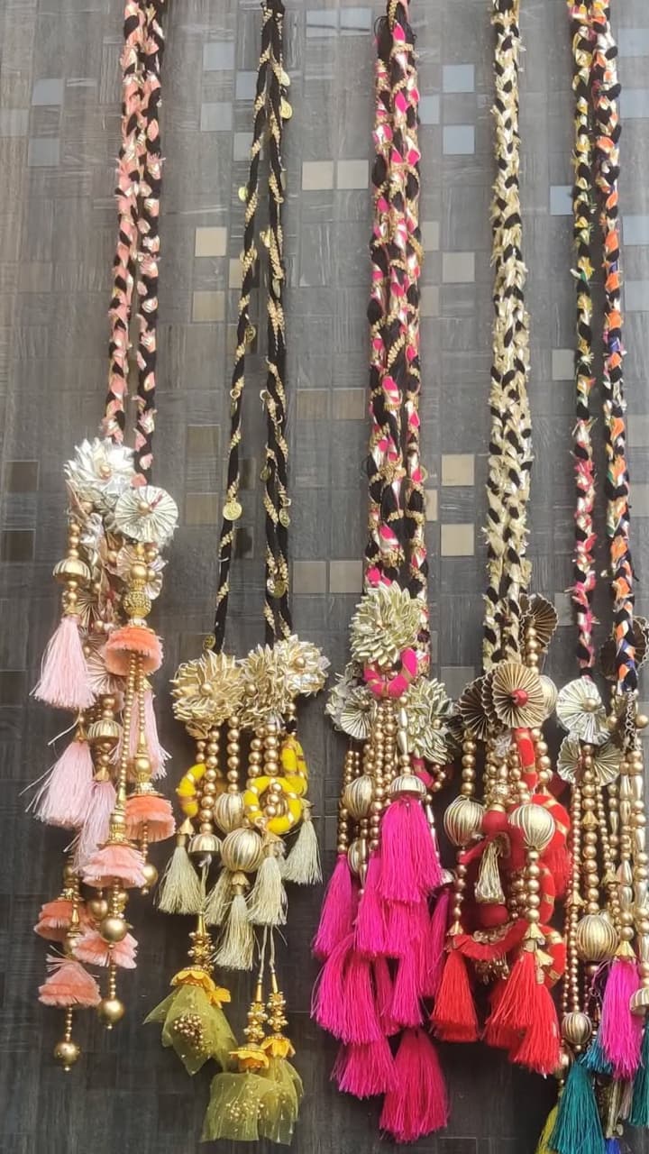 If you are looking for a colorful Paranda, then along with green colored thread, you can also make a Paranda with pink colored tassels, heart shape charms, which will give a very blooming look to your braid.