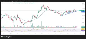 The stock trades comfortably above all its key moving averages of 40/100 and 200 EMA levels on daily chart. In today’s trade as well NBCC has taken support near 40-EMA levels and bounced back reflecting strength in the short term and this trend was visible in the previous few trading sessions as well. With stock continuing to trade in uptrend as visible via trend line, supported by a positive super trend indicator and positive RSI divergence we have a positive outlook..