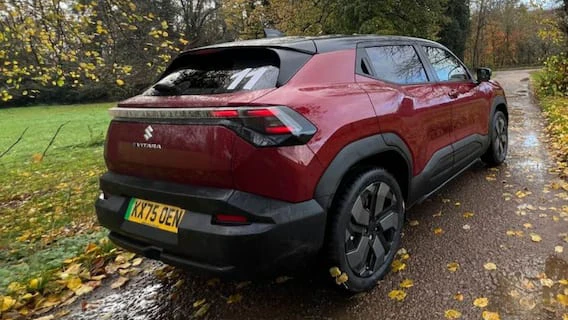The eVitara is a born EV with the Heartect-e platform, and being 4275mm long, it sits right at the heart of the compact EV SUV space. In red, it looks visually appealing and comes with a blanked off grille plus plenty of cladding, which gives it a pure SUV stance. Big wheels and a light bar make it a good-looking car, while there are some details, like the rear door handles are on the C Pillar.