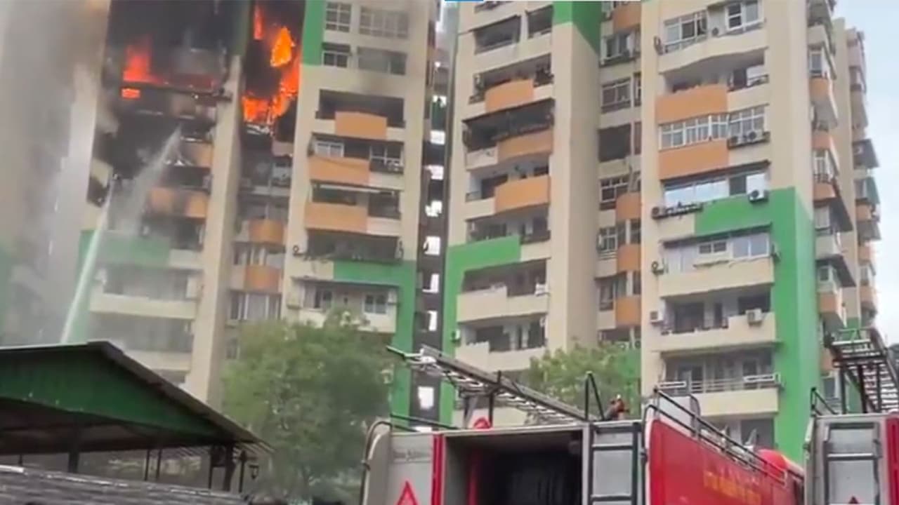 A massive fire broke out at Gaur Green Avenue in Ghaziabad’s Indirapuram area, causing panic. Fire tenders are at the spot to control the blaze. No casualties have been reported so far, and the cause of the fire is yet to be ascertained.