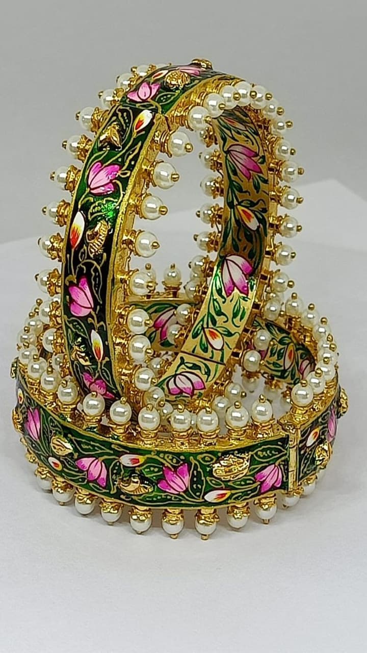 If you are looking for a heavy bracelet design, then you can look at this bracelet. Heavy beads have been used on this bracelet decorated with Meenakari work.