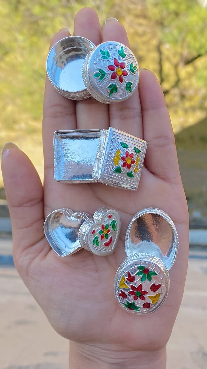 Peacock Feather Meenakari Sindoordani is considered very special. This Sindoordani has a beautiful handle design of Morpans, which has red and green enamel. It looks very royal and traditional.