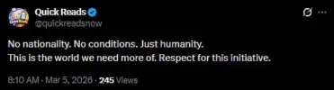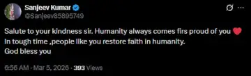 Another X user wrote, “Salute to your kindness sir. Humanity always comes firs proud of you In tough time ,people like you restore faith in humanity. God bless you (sic).” One more netizen tweeted, “No nationality. No conditions. Just humanity. This is the world we need more of. Respect for this initiative (sic).” Check out the tweets below…