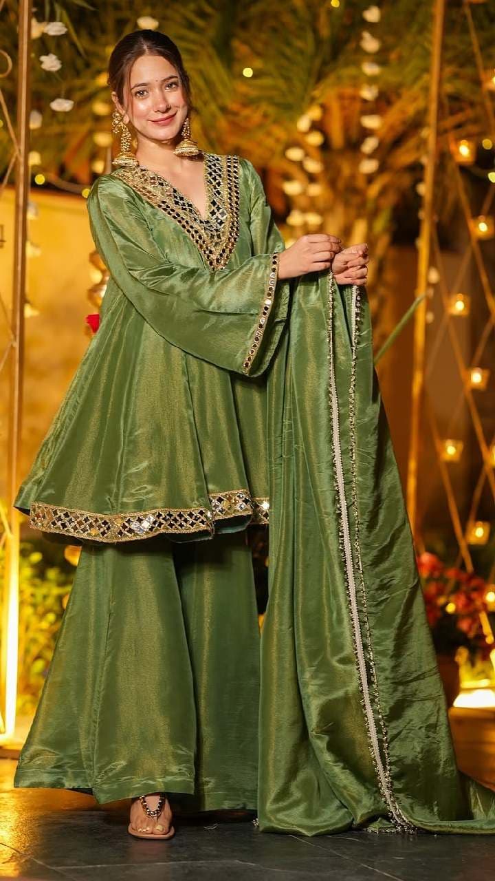 Mirror work suits with palazzo are in trend these days. This look is stylish as well as very comfortable, which looks good in every season.