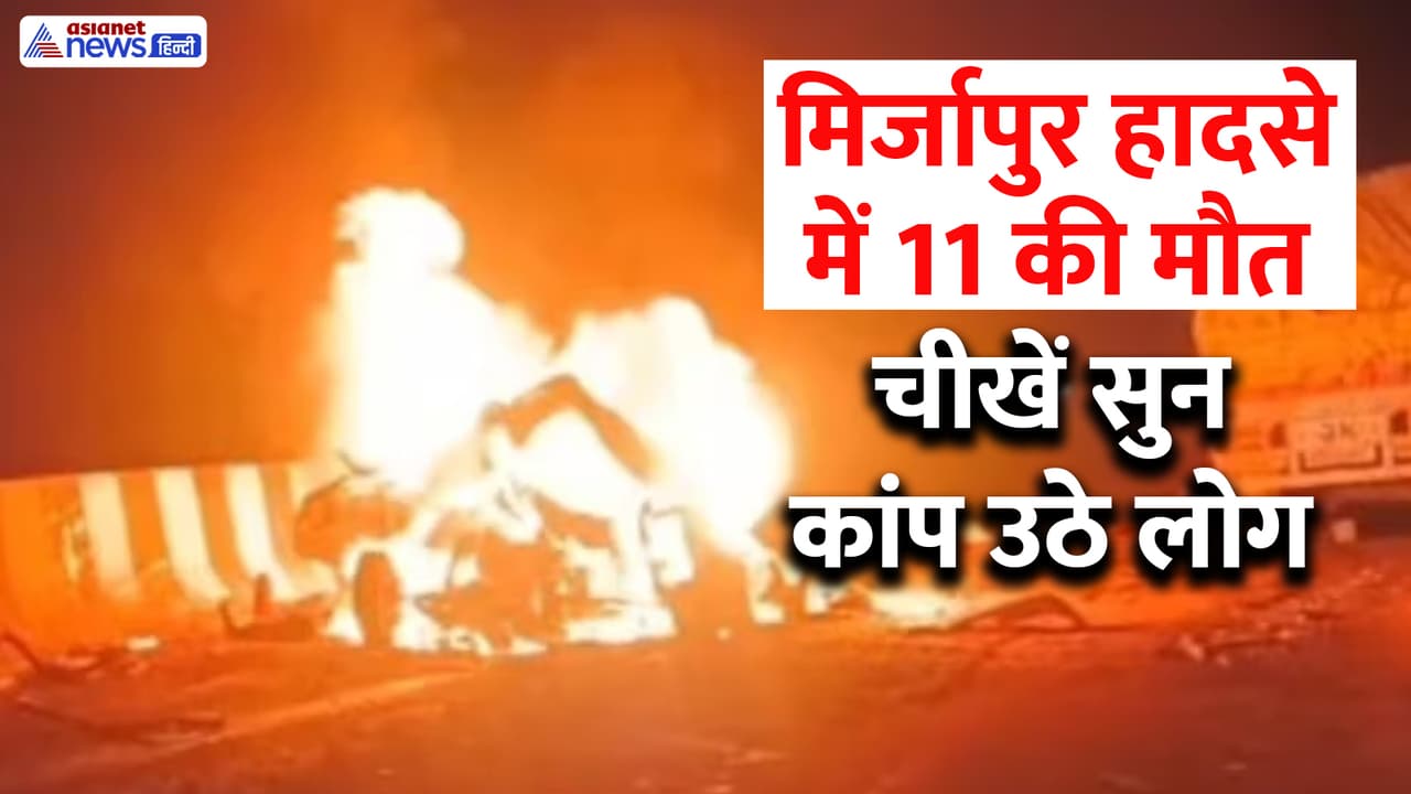 Eleven people died in a heart-wrenching accident that took place late Wednesday night in Mirzapur district of Uttar Pradesh. A truck hit the Bolero, a car and a container from behind. After this collision the Bolero caught fire. This accident was so terrible that 9 people kept burning alive and dying in front of the people, but no one could muster the courage to go near them. The video that has surfaced of this incident will give you goosebumps.