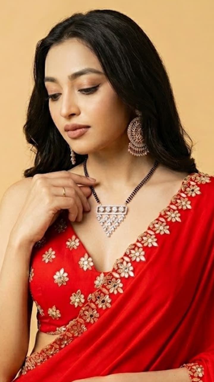 Diamond Mangalsutra is not budget. In such a situation, choose Moissanite, a cheaper alternative to diamond, which is economical and gives more shine than diamond. See here Rs 10000. Latest option in.
