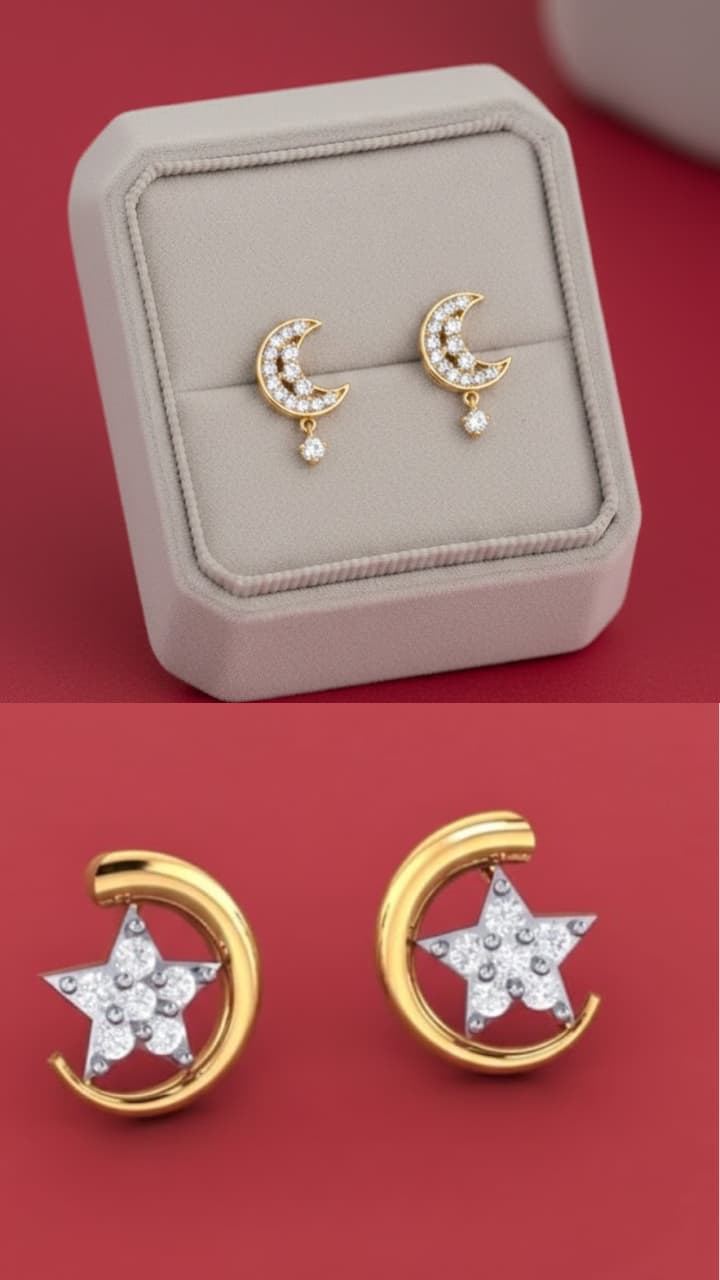The price of gold is sky high. In such a situation, you do not have the budget to buy 4-5 grams of gold. Buy half moon stud earrings in 1 gram of gold, which you and your younger daughter can also wear without any hesitation.