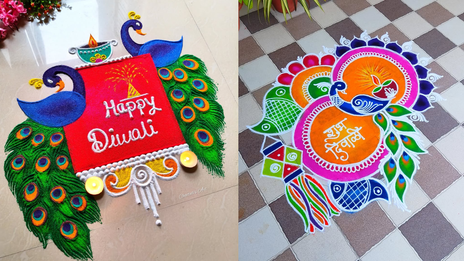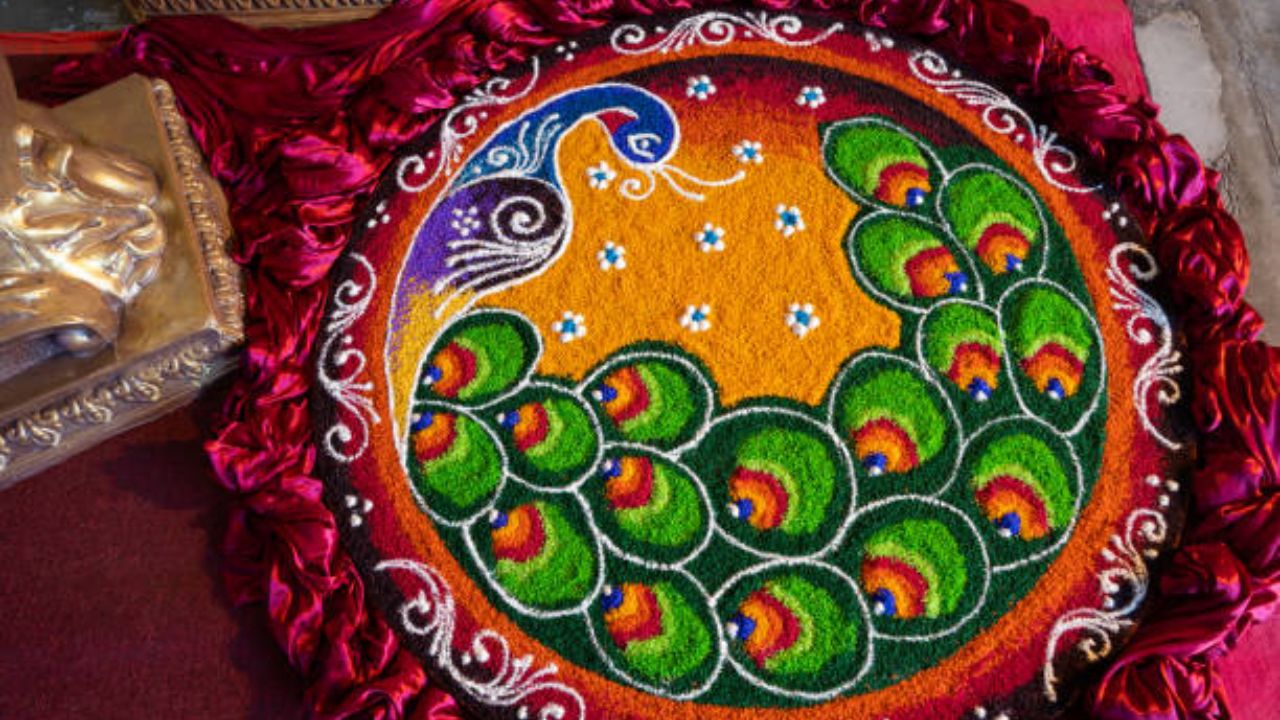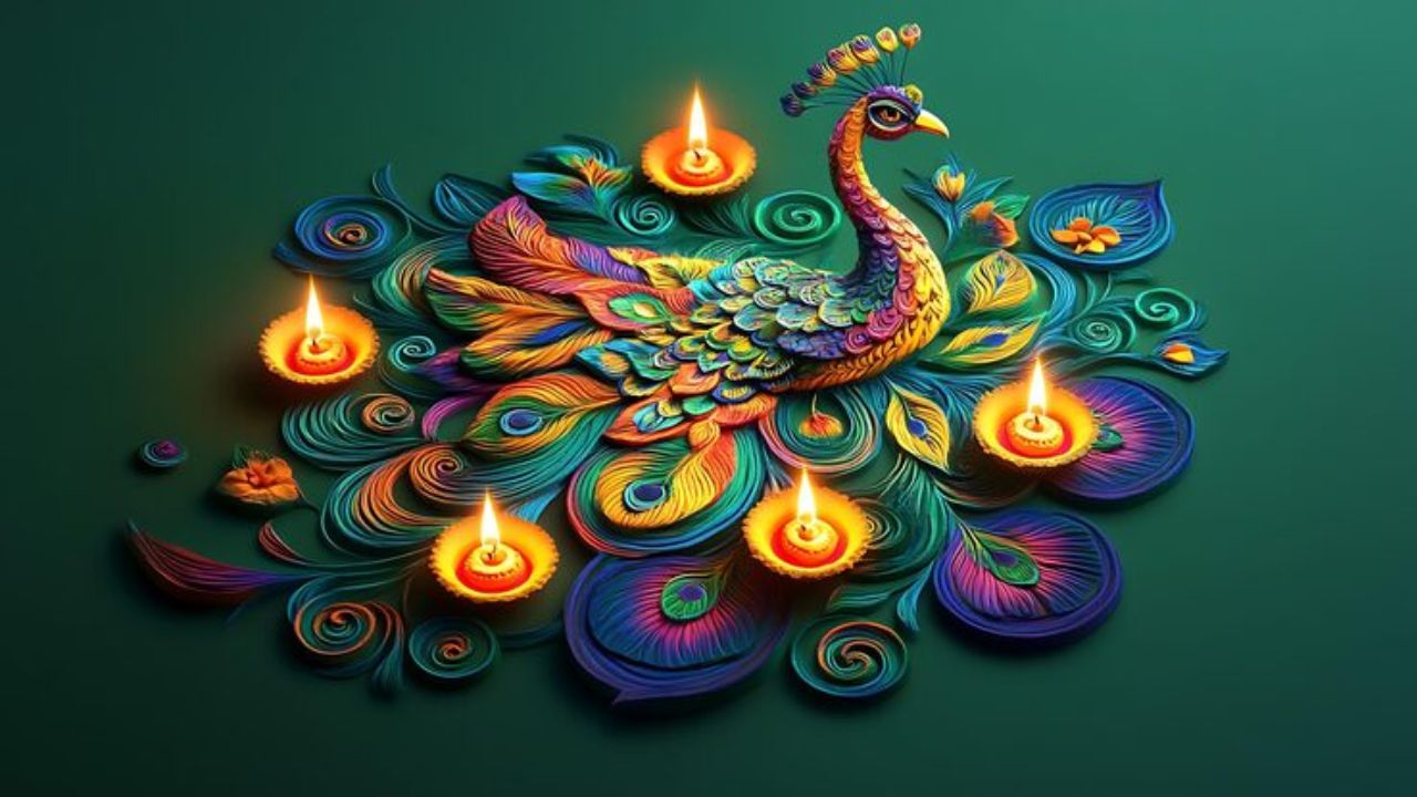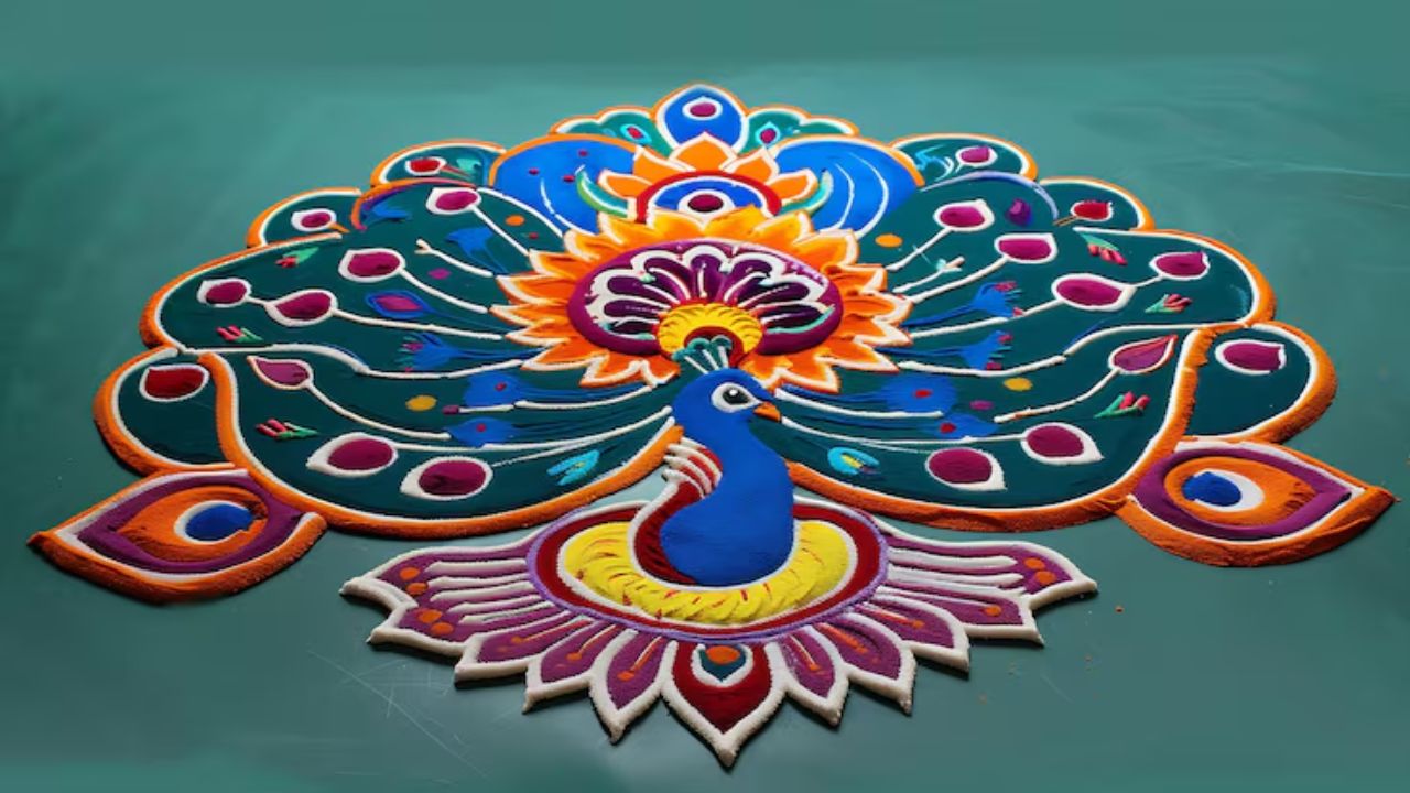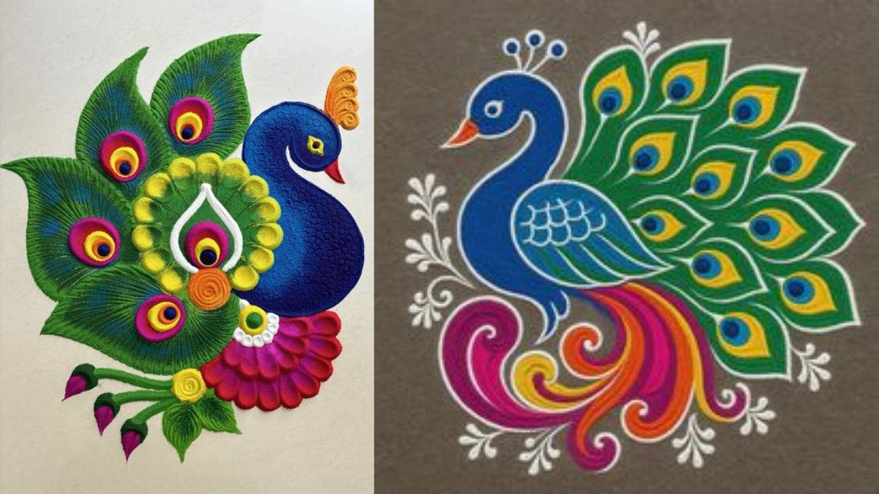 Peacock Rangoli Designs: Diwali is incomplete without rangoli, and rangoli is incomplete without peacock designs. In Diwali rangoli, people often make peacock designs apart from Kalash, Diya, flowers and round rangoli. In such a situation, if you also want to enhance the beauty of the courtyard, hall, menador and puja room of your house, then we have brought with you some wonderful and simple designs of peacock rangoli. Make these peacock rangoli designs on Diwali and enhance the beauty of your home.