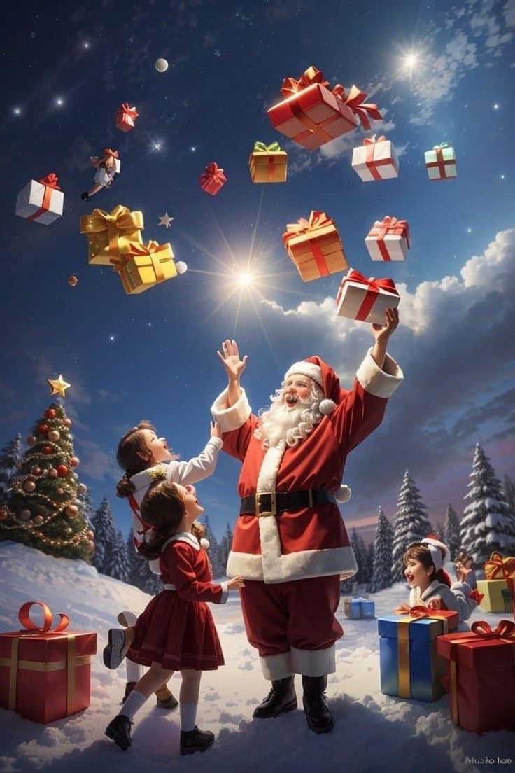 Santa Claus, known worldwide as Father Christmas, embodies the spirit of generosity and joy during the Christmas season. Originating from the 4th-century Saint Nicholas, a bishop famed for secret gift-giving to the poor, his modern image evolved in the 19th century through Clement Clarke Moore’s poem “A Visit from St. Nicholas” and Thomas Nast’s illustrations, depicting a jolly, bearded man in red with a sack of toys.