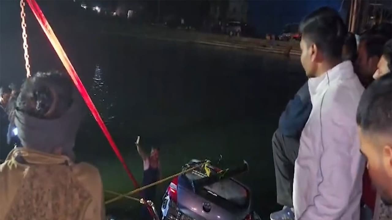 “We recieved the information from the police control room that a car plunged into the canal in Pathrota. Upon arrival, we saw the car’s lights were visible, even though it had sunk entirely. We brought the car out via tractor and recovered three bodies from it. One of the deceased, namely Lucky Patel, has been identified through an ID card found in the car. The rescue operation took nearly 1-1.5 hours. It might be a case of steering failure or drink and drive.”