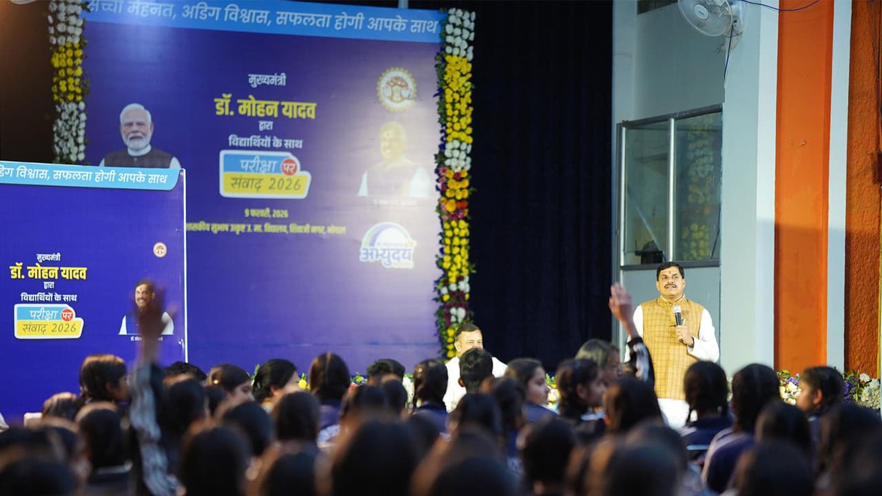 Ahead of MP board examinations, Chief Minister Mohan Yadav interacted with students as part of “Pariksha Par Samvad – 2026” programme held at Government Subhash Higher Secondary Excellence School in Bhopal on Monday and guided the students for preparation. He urged students taking exams to prepare diligently without stress and to move forward with determination rather than fear.