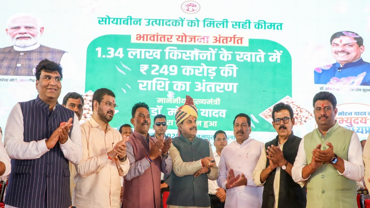 MP CM Mohan Yadav transferred Rs 249 crores to 1.34 lakh soybean farmers via the Bhavantar scheme in Indore. He also launched development projects worth Rs 264 crore, including a new road, and announced further infrastructure upgrades.