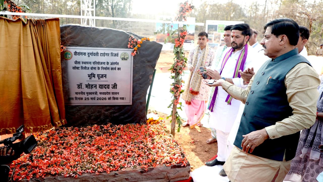 CM Mohan Yadav performed Bhoomi Pujan of Cheetah Rehabilitation Project in Nauradehi Tiger Reserve and released 14 tortoises in their natural habitat. The government is focusing on employment and environmental balance by promoting biodiversity conservation and wildlife tourism.