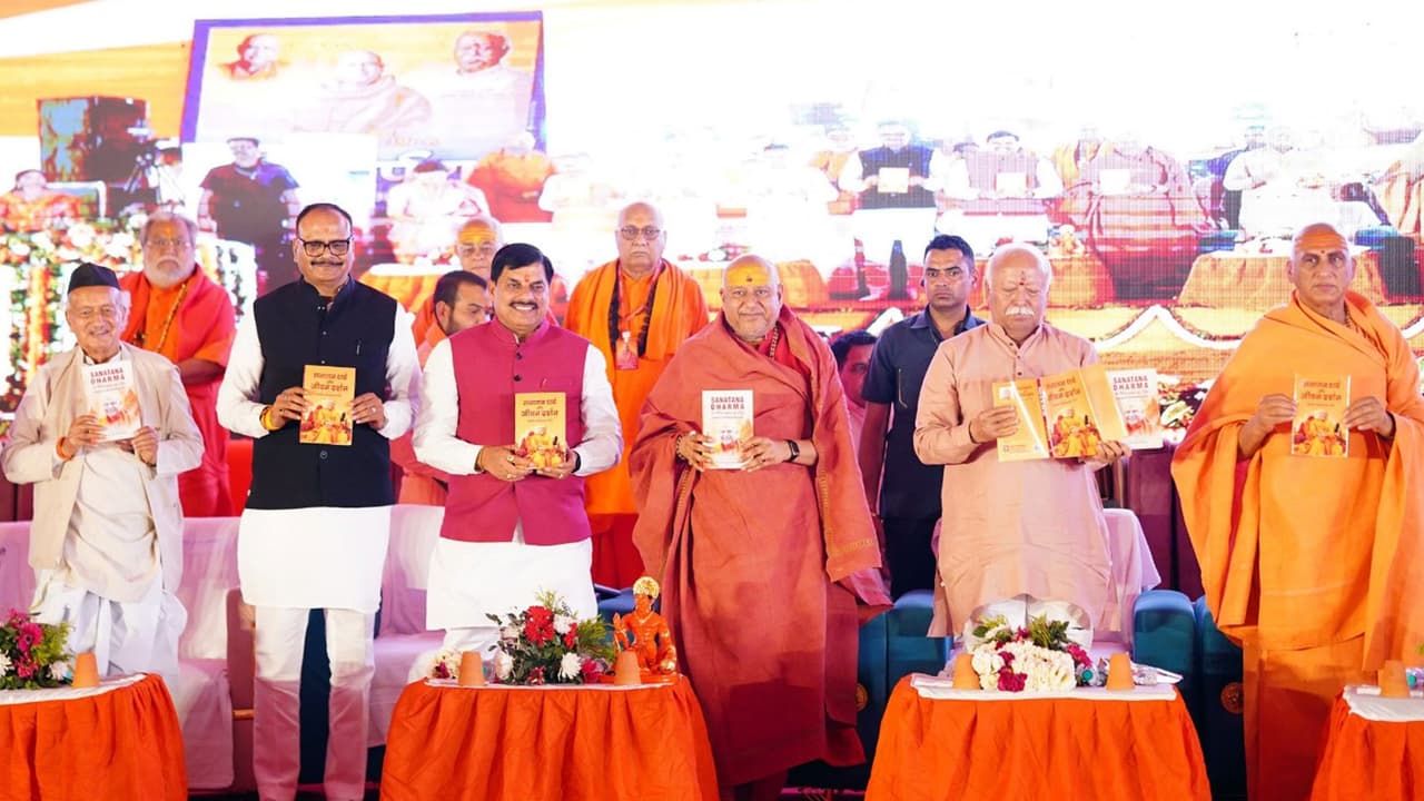 Many saints and dignitaries including Mohan Bhagwat, Swami Yatindra Anand Giri, Avdheshanand Giri, Sadhvi Ritambhara and Arif Mohammad Khan were present in this program. The program started with the recitation of Hanuman Chalisa by the children. On this occasion, the Chief Minister also released a book titled “Sanatan Dharma and Jeevan Darshan”.