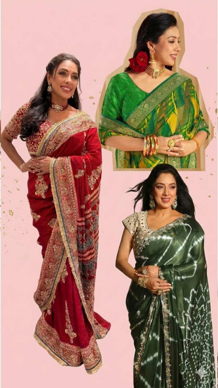 If you don’t feel like wearing a simple saree, then recreate Rupali Ganguly’s purple sequin saree look. Wear a plain silk full sleeve blouse with such a saree.
