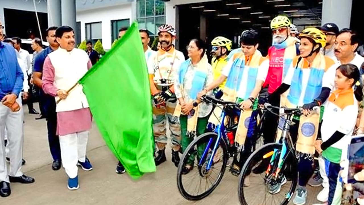 Chief Minister Dr. Mohan Yadav sent off international mountaineer Anjana Yadav for the ‘Paddle to Plant – New India, Green India’ campaign. Anjana will spread the message of environment, unity and culture across the country through a 4,000 km cycle journey.