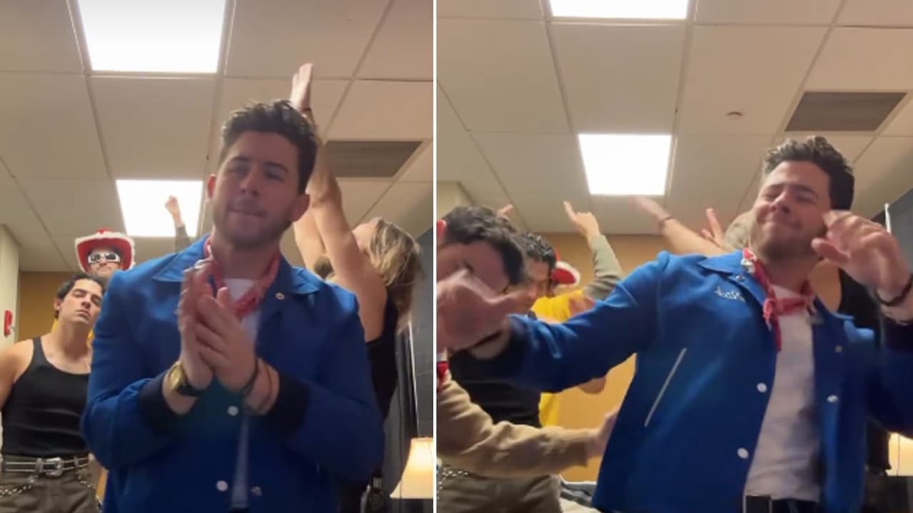 Nick took to his official Instagram handle to share a fun video of himself dancing with his team members before a show. The clip shows Nick and everyone in the room grooving enthusiastically to “Shararat,” clearly enjoying the upbeat vibe of the song.