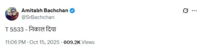 At 11:06 pm, the 83-year-old superstar shared a post containing just two words: “Nikal Diya” (meaning “kicked out”), leaving followers puzzled and buzzing with speculation.