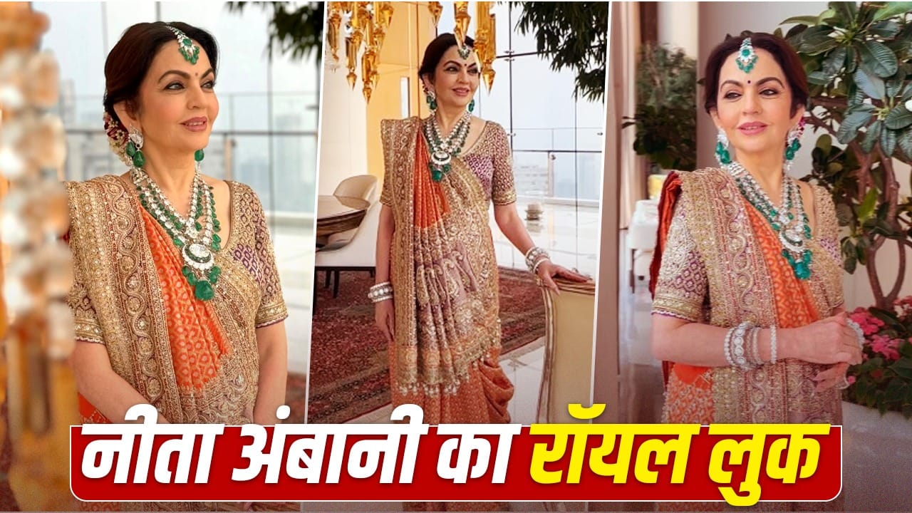 This time too her look remained similar, where Jadau saree, Rani Haar and traditional jewelery made her royal style even more special. Let us also tell you in this article the complete details and some wonderful pictures of this royal look of Nita Ambani.