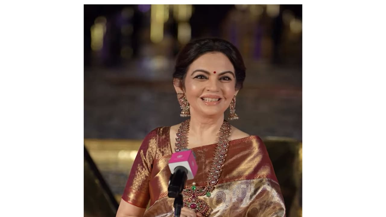 Nita Ambani stuns in molten gold saree for NMACC’s 3rd anniversary