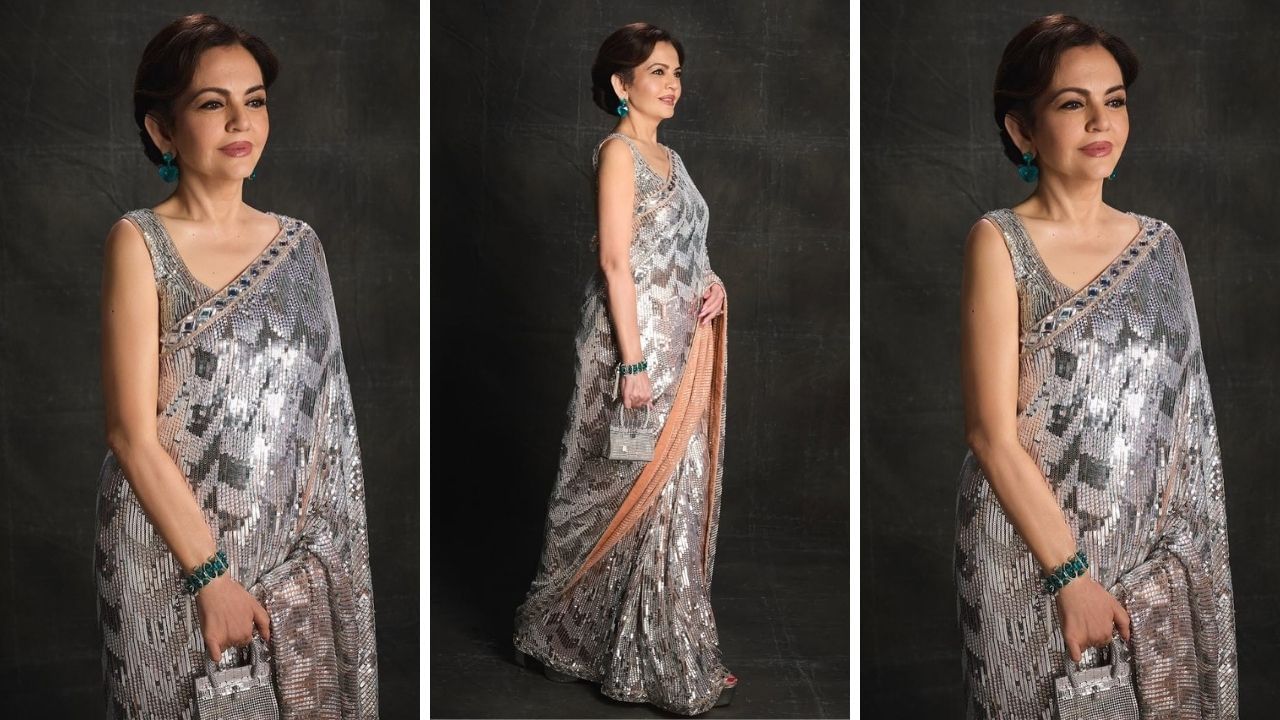 Modern Fashion Vibe : This look of Nita Ambani is classic as always, but her look gives a vibe of modern fashion. To complete the look, she has carried a matching cut sleeve blouse with the saree and a matching miniature Birkin bag, which is from Hermes collection. Nita Ambani’s decency, classy style and graceful style made this look even more special.