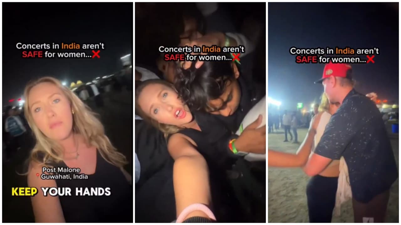 A foreign traveller’s distressing account from the Post Malone concert in Guwahati has sparked outrage online, after she alleged that she and her friend were harassed and inappropriately touched without consent in the middle of a packed crowd. Emma, a backpacker journeying across Southeast Asia, shared a video capturing her struggle to navigate through a sea of concertgoers. In a post on Instagram, she said, “Do you think concerts are a safe place for women in India? Last night at the Post Malone concert in Guwahati things turned serious very quickly. As two women in the crowd, both me and Amina were touched without consent within minutes of entering the packed area.”
