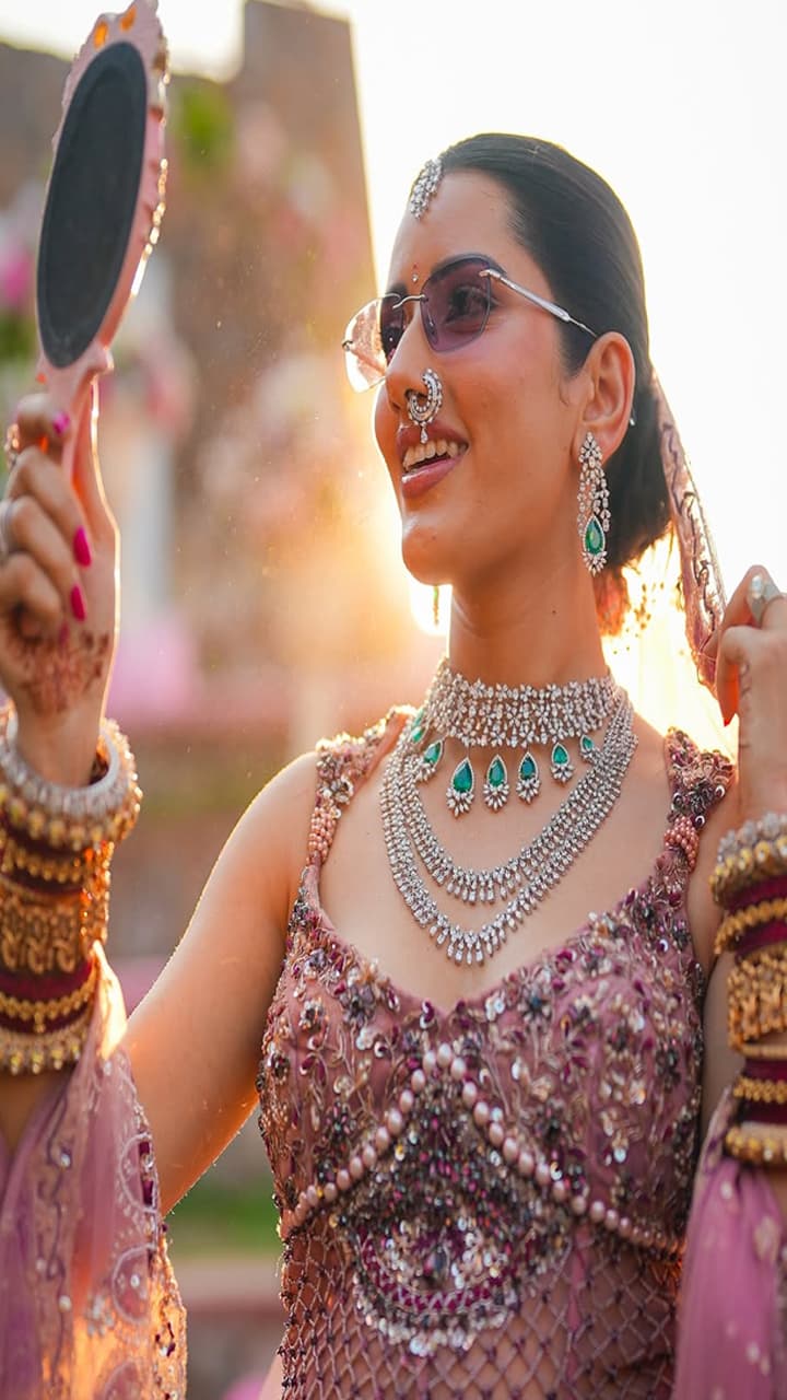 By the way, the nose ring worn by Nita Ambani is made of diamond. You can make it in stone. You can add charm to the look by adding a big stone pendant at the bottom.
