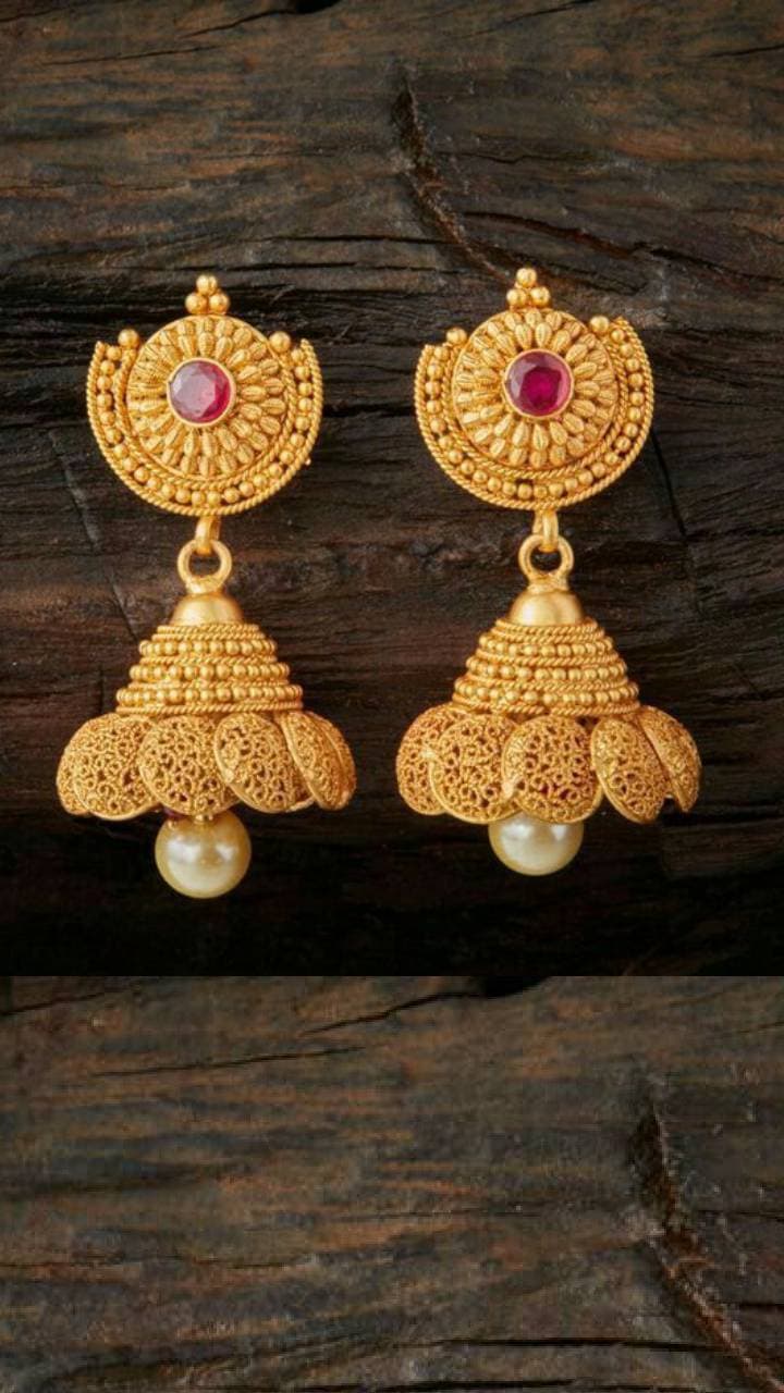 If you want to make heavy look earrings in less grams, then get ball pendant earrings made. Due to its fine workmanship, it looks heavy but you can easily get such earrings made in 5 to 6 grams.