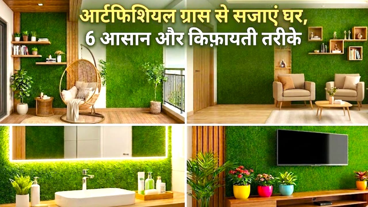 Home Decoration Ideas with Artificial Grass: Give luxury and natural look to every corner with artificial grass. Budget friendly ideas of balcony, living room, gate decor will make the house unique without any extra expense.
