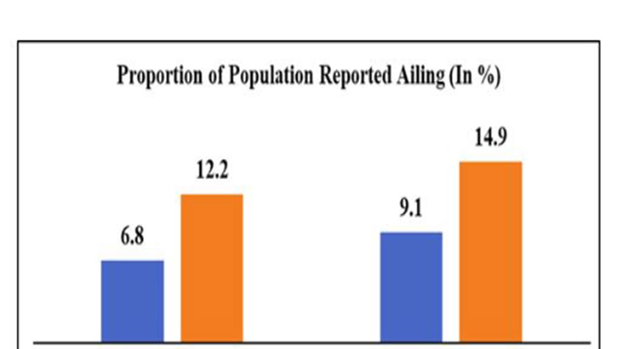 The survey noted a significant rise in coverage of government-funded health insurance schemes, including Ayushman Bharat – Pradhan Mantri Jan Arogya Yojana, with coverage increasing from 12.9 per cent to 45.5 per cent in rural areas and from 8.9 per cent to 31.8 per cent in urban areas. It also highlighted improvements in maternal healthcare, with institutional deliveries rising to 95.6 per cent in rural areas and 97.8 per cent in urban areas, reflecting better access to healthcare services.