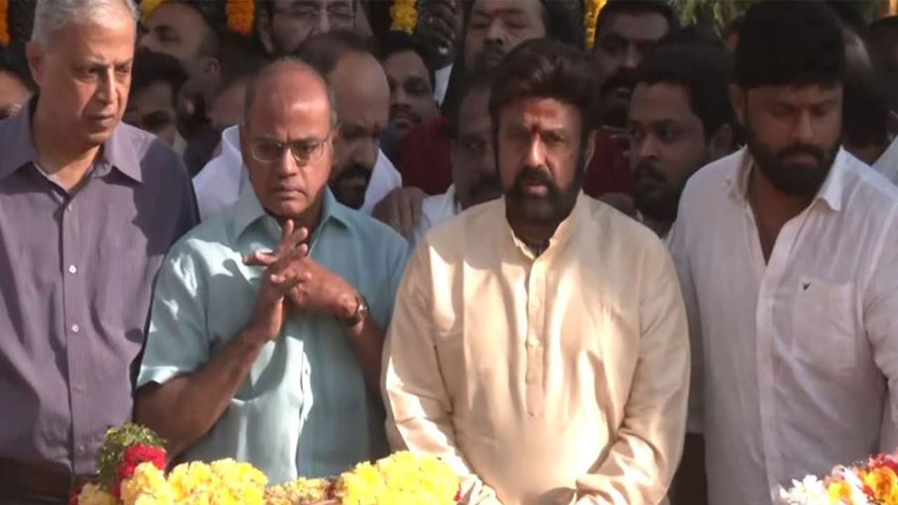 Andhra Pradesh MLA and actor Nandamuri Balakrishna on Sunday paid tribute to his father, former Chief Minister NT Rama Rao, at NTR Ghat on the 30th death anniversary of the legendary leader.