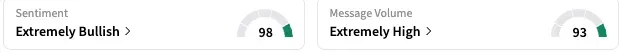 On Stocktwits, retail sentiment toward the stock stayed ‘extremely bullish’ (98/100) by late Thursday, and the message volume also remained at ‘extremely high’ levels.