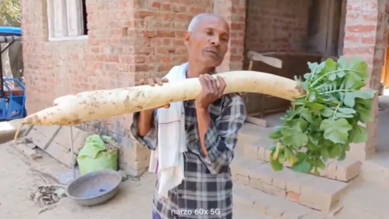 5 Feet Radish India: A farmer from Pratapgarh has surprised everyone by growing 5 feet long radish. The video of this unique radish is going viral on social media and people are giving different types of reactions. Know the complete story of this special farming.
